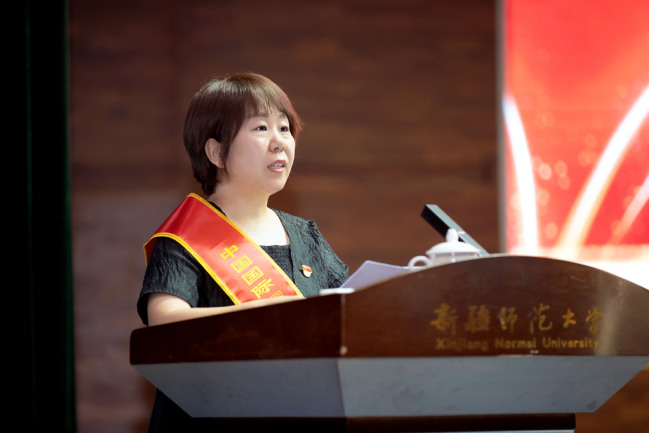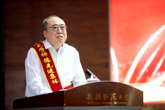 葛国强调,当前正处于服务国家战略需求机遇期、内涵式高质量发展提升期、高水平一流师范大学建设攻坚期,我们比任何时候都更需要培养造就一支师德高尚、专业精湛、结构科学、充满活力的高素质教师队伍。葛国代表学校党委对广大教师提出三点希望:一是坚定理想信念,筑牢立德树人之根。要对“培养什么人、怎样培养人、为谁培养人”这一根本问题有清醒的认识,切实担起学生健康成长的指导者和引路人的责任,坚持不懈用习近平新时代中国特色社会主义思想凝心铸魂,以铸牢中华民族共同体意识为主线,发挥好教育工作者在贯彻落实新时代党的治疆方略方面的基础性、支撑性作用,勇担“为党育人、为国育才”的初心与使命。二是培养高尚师德,塑造立德树人之魂。必须要用高尚的师德和对学生的仁爱之心给予学生最生动、最深远的教育,当好塑造学生品格、品行、品味的大先生。三是勤修学识内功,巩固立德树人之基。要以“教给学生一碗水,老师要有一潭水”的精神苦练内功,主动参与到学校一流学科、一流专业、一流课程建设工作中去,帮助每一位学生健康成长,成为栋梁之才。希望广大教师接续奋斗、载梦前行,立“大先生”志,育时代新人,将个人的奋斗目标同学校的发展紧紧相连,为实现“聚焦立德树人,建设一流师范”办学目标不懈努力,为新疆经济社会发展和教育事业发展做出新的更大贡献。