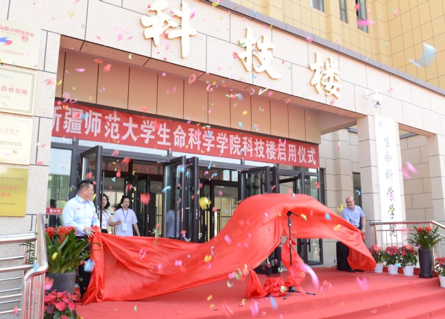 校党委副书记、校长吾满江·艾力和校党委副书记王志勇共同为生命科学学院科技楼揭牌