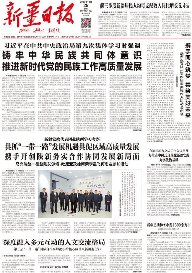 新起点,再出发。新疆将秉持丝路精神,进一步加大“走出去”“请进来”力度,创新合作方式,拓展合作领域,在文化、旅游、教育、科技等方面开展丰富多彩的人文交流交往活动,推动文明互学互鉴和文化融合创新,奏响新时代丝路乐章。