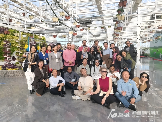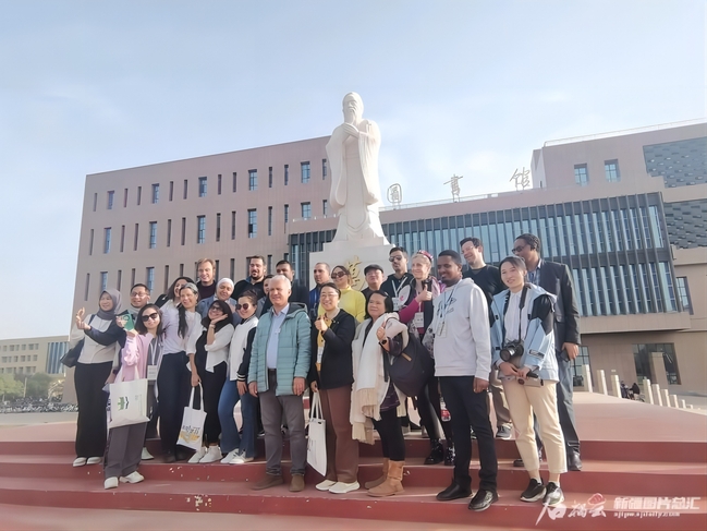 2023青年汉学家研修计划新疆班学员在新疆农业博览园合影。石榴云/新疆日报记者李莉 摄