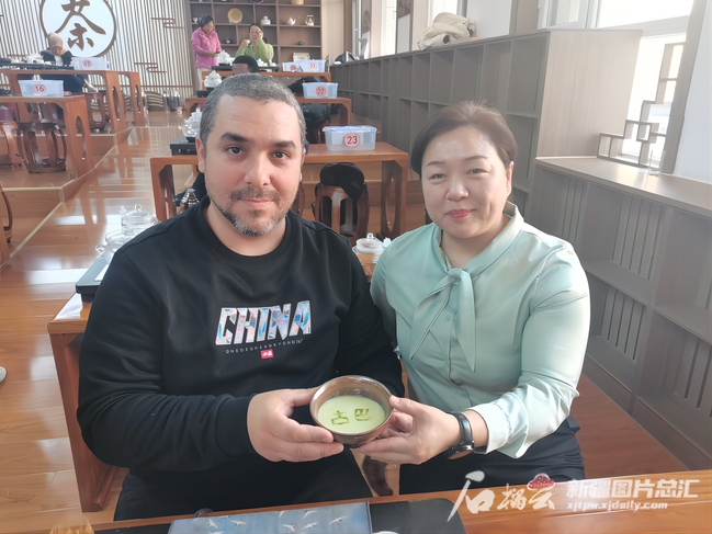 2023青年汉学家研修计划新疆班学员在茶艺课上体验茶百戏。石榴云/新疆日报记者李莉 摄