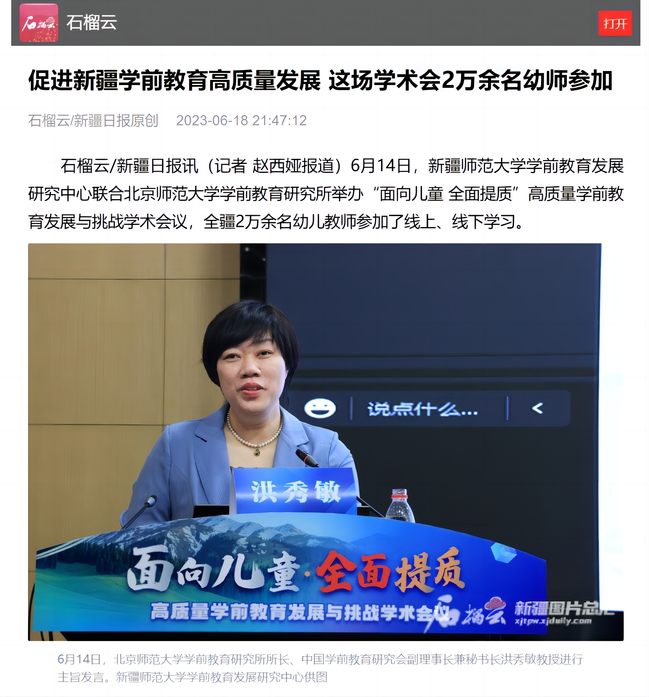 石榴云/新疆日报讯(记者 赵西娅报道)6月14日,365英国上市公司官网学前教育发展研究中心联合北京师范大学学前教育研究所举办“面向儿童 全面提质”高质量学前教育发展与挑战学术会议,全疆2万余名幼儿教师参加了线上、线下学习。