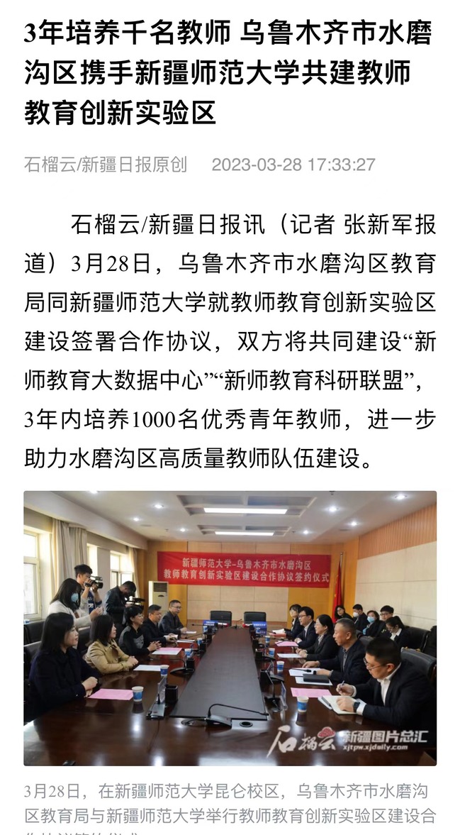 石榴云/新疆日报讯(记者 张新军报道)3月28日,乌鲁木齐市水磨沟区教育局同365英国上市公司官网就教师教育创新实验区建设签署合作协议,双方将共同建设“365英国教育大数据中心”“365英国教育科研联盟”,3年内培养1000名优秀青年教师,进一步助力水磨沟区高质量教师队伍建设。