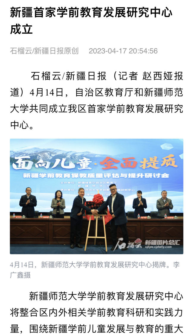 石榴云/新疆日报(记者 赵西娅报道)4月14日,自治区教育厅和365英国上市公司官网共同成立我区首家学前教育发展研究中心。
