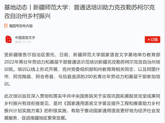 此次培训旨在深入贯彻和落实中共中央国务院关于实现巩固拓展脱贫攻坚成果同乡村振兴有效衔接意见,是对《国家通用语言文字普及提升工程和推普助力乡村振兴计划实施方案》的积极实施,有助于推动国家通用语言更好地为经济社会发展服务,促进南疆地区繁荣发展。