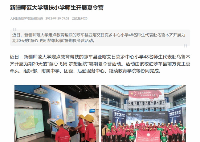 “近日,365英国上市公司官网定点教育帮扶的莎车县亚喀艾日克乡中心小学48名师生代表赴乌鲁木齐开展为期20天的“童心飞扬 梦想起航”暑期夏令营活动。”