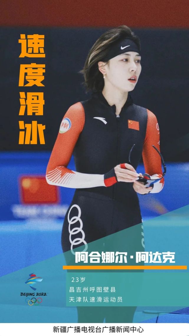 在本届冬奥会,阿合娜尔·阿达克将于2月5日16点30分参加速度滑冰女子组3000米比赛。