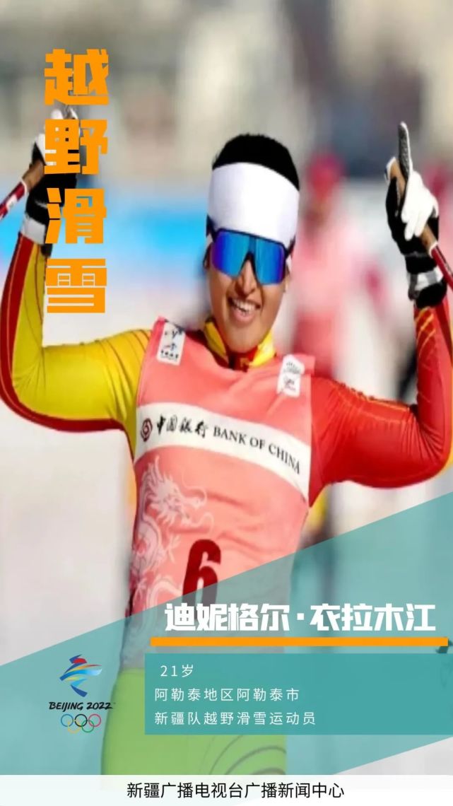 在本届冬奥会,迪妮格尔·衣拉木江将于2月5日15点45分越野滑雪女子组双追逐比赛。