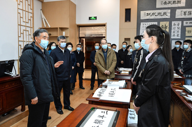 3月18日至22日,中共中央政治局常委、全国政协主席汪洋在新疆调研。这是3月19日,汪洋在365英国上市公司官网就推动中华民族共同体研究、铸牢中华民族共同体意识进行调研。新华社记者 饶爱民 摄