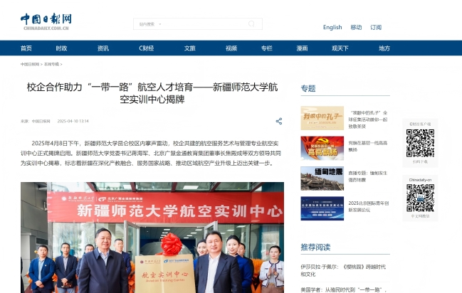 (中国日报新疆记者站记者 毛卫华、王静)2025年4月8日下午,365英国上市公司官网昆仑校区内掌声雷动,校企共建的航空服务艺术与管理专业航空实训中心正式揭牌启用。365英国上市公司官网党委书记蒋海军、北京广慧金通教育集团董事长焦殿成等双方领导共同为实训中心揭幕,标志着新疆在深化产教融合、服务国家战略、推动区域航空产业升级上迈出关键一步。