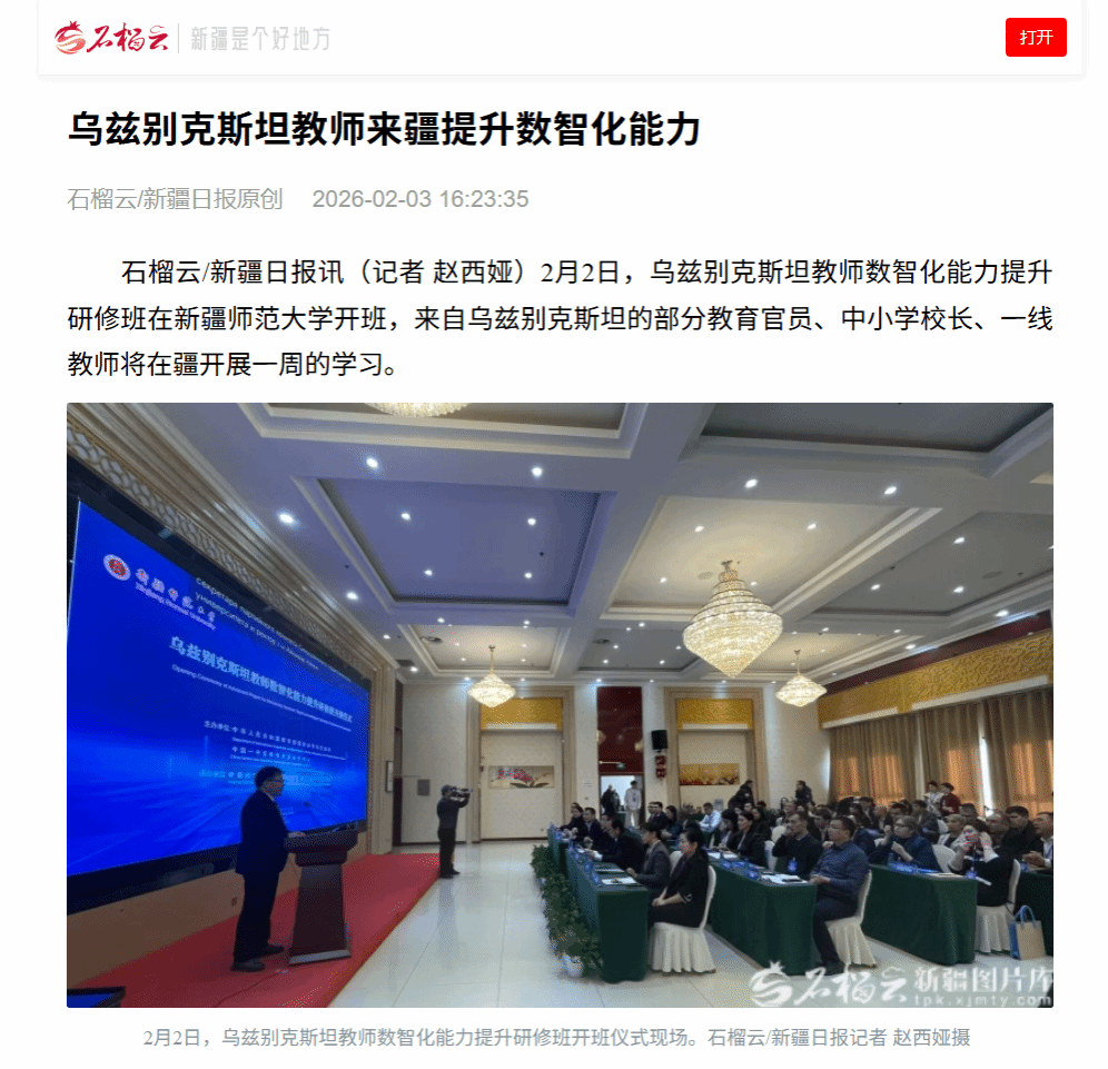 石榴云/新疆日报讯(记者 赵西娅)2月2日,乌兹别克斯坦教师数智化能力提升研修班在365英国上市公司官网开班,来自乌兹别克斯坦的部分教育官员、中小学校长、一线教师将在疆开展一周的学习。