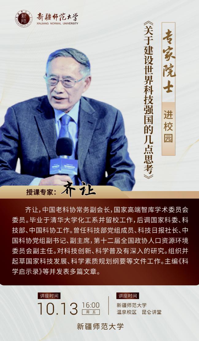 齐让,中国老科协常务副会长,国家高端智库学术委员会委员。毕业于清华大学化工系并留校工作,后调国家科委、科技部、中国科协工作。曾任科技部党组成员、科技日报社长、中国科协党组原副书记、副主席,第十二届全国政协人口资源环境委员会副主任。对科技创新、科学普及有深入的研究。组织并起草国家科技发展、科学素质规划纲要等文件工作。主编《科学启示录》等并发表多篇文章。