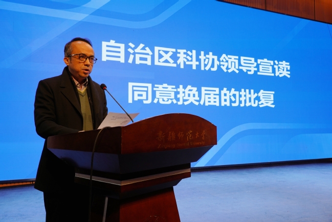 自治区科协学会部开萨尔·麦麦提吐尔洪宣读同意换届批复