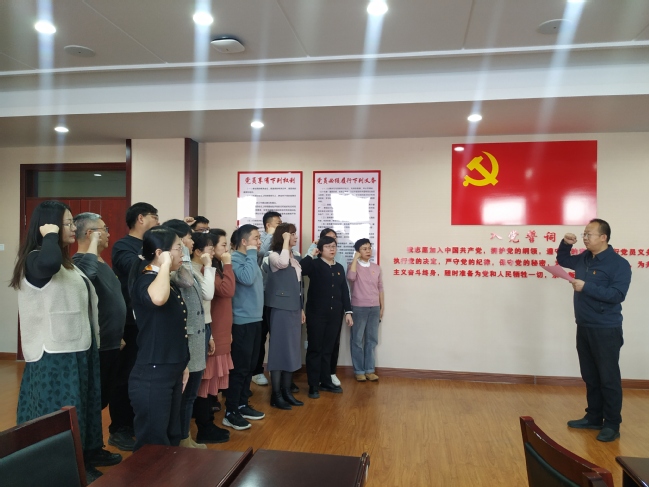 基建处党支部书记唐静同志带领全体党员同志重温入党誓词