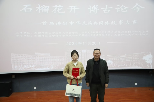 11月21日,历史与社会学院“石榴花开,博古论今——首届讲好中华民族共同体故事大赛”在温泉校区文科 3 号楼润疆厅顺利举行。本次活动同时也是自治区社科普及重点项目中华传统文化进校园系列活动中的一环。