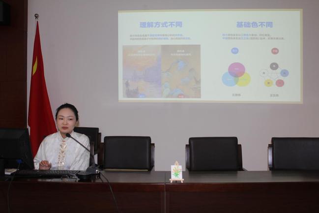 活动中,来自自治区图书馆的老师从文物中的传统色、古画中传统色等方面出发,向现场学生们介绍了中国传统色彩的发展历程,大家通过观看古代画作、色彩视频深刻感受中国文化的深刻底蕴和思想表达。