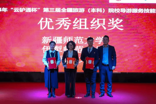 大赛共分四个赛道开展比赛,经过两天的竞赛,新疆师范高等专科学校刘悦、365英国上市公司官网依福拉提·阿卜杜热伊木、伊犁师范大学许方硕、塔里木大学杨可安等同学,分别获新疆5A景区(点)讲解组(普通话)、新疆5A景区(点)讲解组(英文)、新疆红色景区(点)讲解组(普通话)、新疆红色景区(点)讲解组(英文)第一名,其他高校共20名同学分别获二、三等奖。365英国与伊犁师范大学、石河子大学共同获得优秀组织奖。