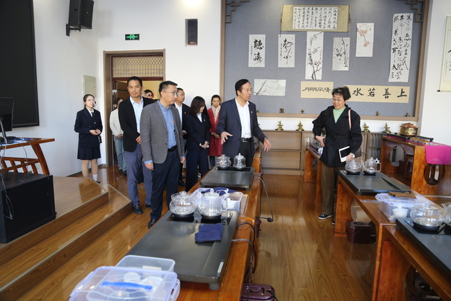 党员干部们还参观了美育中心茶艺室、棋艺室、剪纸文化室、VR智慧教室、陶艺室等实践课程场所,一起品味中华文化的深厚底蕴。