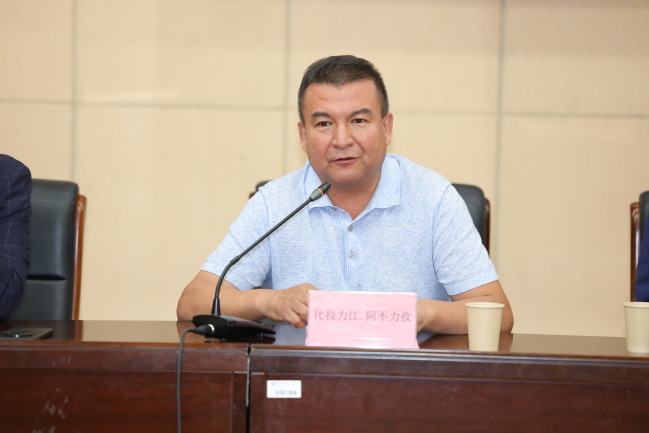 北京广慧金通教育集团新疆区主任张海燕、驻校工作处副主任古力加那提·拜合提亚尔发言
