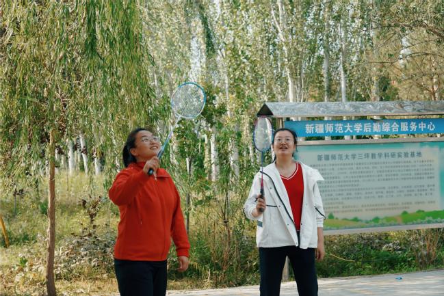 在园区内,教师们开展徒步比赛,做游戏,踢毽子,打乒乓球、羽毛球,在交流中加深理解、增进情谊,校工会还为大家准备了纪念品。