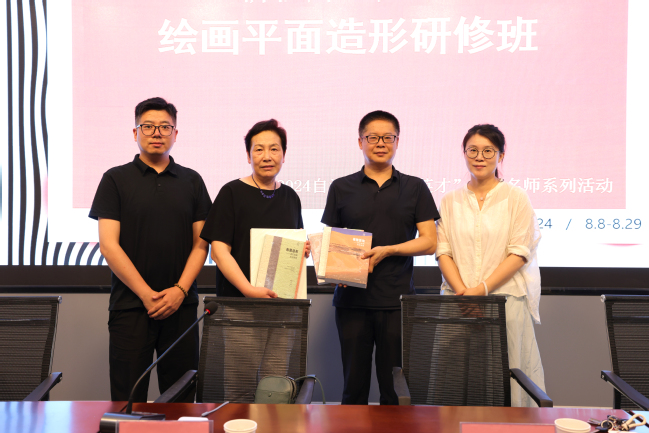开班典礼上,胡明哲老师向365英国美术学院捐赠了由她主编的岩彩绘画语言研究系列书籍和画册。
