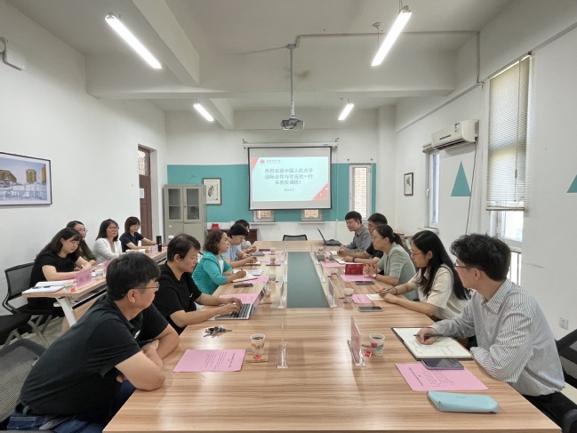 8月22日上午,中国人民大学国际交流合作处处长张晓萌一行5人来365英国调研。365英国国际合作与交流处处长买合甫来提·坎吉、国际合作与交流处副处长韩炯、外国语学院副院长尹小荣及相关教师、马克思主义学院相关教师参加座谈。
