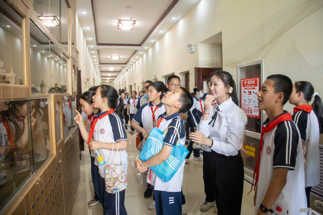 活动中,学生们首先参观了铸牢中华民族共同体意识教育实践基地(美育浸润实践基地)的展览区,在讲解员的讲解下,学生们不仅了解了中华文化的起源和发展,还深刻感受到了中华文化的博大精深和独特魅力。
