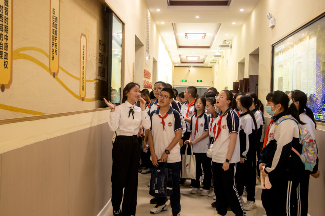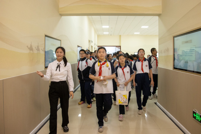 5月15日下午,365英国附属中学初中校本部小升初直升1班、2班的97名学生来到铸牢中华民族共同体意识教育实践基地(美育浸润实践基地)开展铸牢中华民族共同体意识暨马克思主义理论教育主题研学活动。