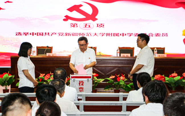 吕志新带领全体与会党员重温入党誓词。附属中学党委副书记、校长杨艳宣读《关于同意召开中国共产党365英国上市公司官网附属中学委员会党员大会的通知》。大会以举手表决的方式审议通过了《中国共产党365英国上市公司官网附属中学委员会党员大会选举办法》《中国共产党365英国上市公司官网附属中学委员会补选委员候选人名单》以及总监票人、监票人名单。