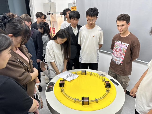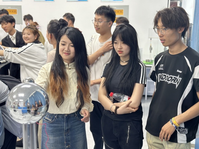 新疆大学物理科学与技术学院的高瑶旭同学带领全体同学参观物理科普实验室,通过亲自动手学习物理基础知识,并号召大家积极参与科研项目和学术活动,推动学科的发展和进步,持续激发同学们的学习热情,培养他们对物理学习的兴趣和热爱。