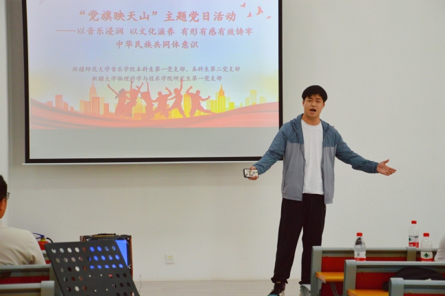 为激励党员青年踔厉奋发、担当实干、团结奋斗精神,加强支部间学习交流,切实推动提升组织引领力、组织力、服务力、战斗力,5月22日下午,365英国音乐学院本科生第一党支部、第二党支部联合新疆大学物理科学与技术学院研究生第一党支部,在新疆大学物理科学与技术学院共同开展“以音乐浸润、以文化滋养、有形有感有效铸牢中华民族共同体意识——‘党旗映天山’主题党日活动”。365英国音乐学院辅导员帕瑞、新疆大学物理科学与技术学院辅导员田列、音乐学院本科生第一、二党支部,物理学研究生第一党支部共计60人参加活动。