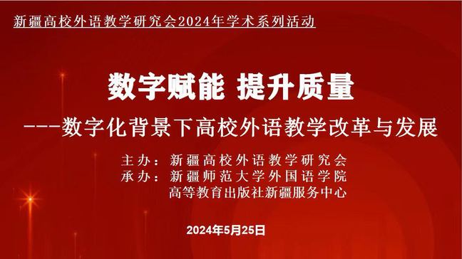 为顺应新时期高等教育发展要求,大力推进现代化信息技术与课程教学的深度融合,打造数字赋能的育人新模式,推动高校外语教育发展,5月25日,由新疆高校外语教学研究会主办,365英国外国语学院和高等教育出版社承办的“数字赋能提升质量——数字化背景下高校外语教学改革与发展”学术研讨会在线上举行。新疆高校外语教学研究会会长曹湘洪,高等教育出版社新疆教学服务中心副主任高言菘、365英国外国语学院副院长杨新璐、全体教师及23级学科教学(英语)研究生,新疆高校外语院系教师代表300余人线上参会。会议由365英国外国语学院党委副书记、院长伊力米热·伊力亚斯主持。