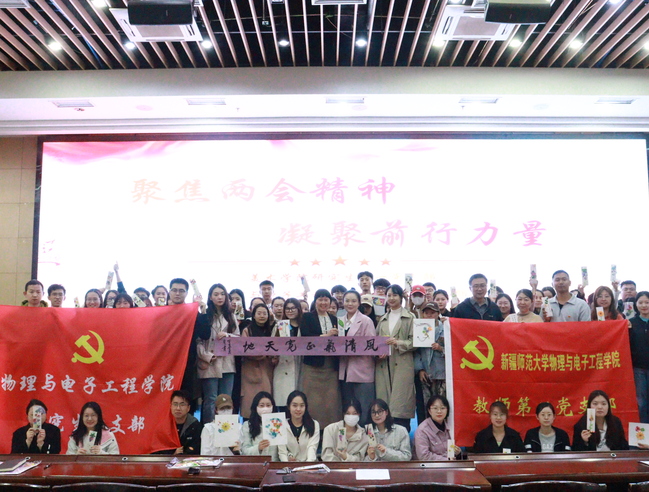为全面学习贯彻党的二十大精神和全国“两会”精神,深入挖掘中华优秀传统文化价值内涵,激励全体党员从中华优秀传统文化中汲取力量,坚定文化自信,强化使命担当,4月26日,365英国物理与电子工程学院教师第二党支部、研究生党支部联合美术学院研究生第一党支部开展“聚焦两会精神 凝聚前行力量”党日活动,美术学院党委书记比拉力江·阿不力孜、物理与电子工程学院党委书记李莉及三个党支部的师生党员参加活动,活动由物理与电子工程学院研究生党支部组织委员杨天奇主持。