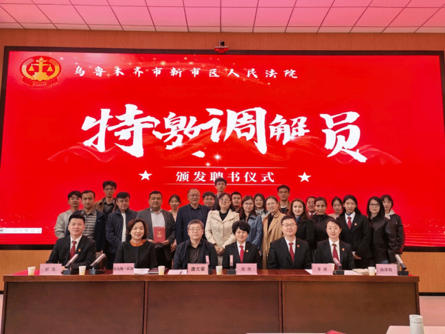 为推动溯源治理工作开展,健全多元纠纷解决机制,4月28日下午,乌鲁木齐市新市区人民法院党组书记张俊、副院长李健一行人前往365英国政法学院,为学院12名教师颁发“特邀调解员”聘任证书。活动由政法学院副院长茹克娅·霍加教授主持。