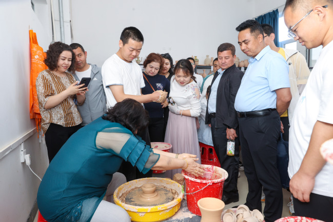 此外,基地还组织了一场别开生面的中华文化体验活动。书记、校长们亲自参与了书法、茶艺、陶艺等传统手工艺的制作过程,感受了中华文化的深厚底蕴和独特魅力。通过亲身体验,大家更加深刻地认识到铸牢中华民族共同体意识的重要性,纷纷表示要将这一意识融入到中小学的教育教学之中,引导学生树立正确的国家观、民族观、历史观、文化观。