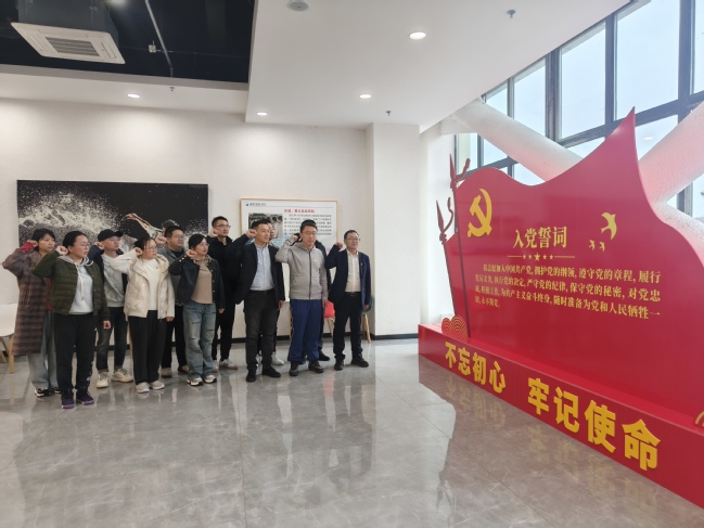 活动中,全体党员面对鲜艳的党旗高举右手,重温入党誓词,铿锵恢宏的誓词,震撼着在场的每一位党员,一字一句,神圣而豪迈,体现了全体党员对中国共产党的无限忠诚。