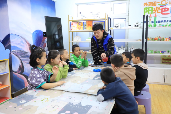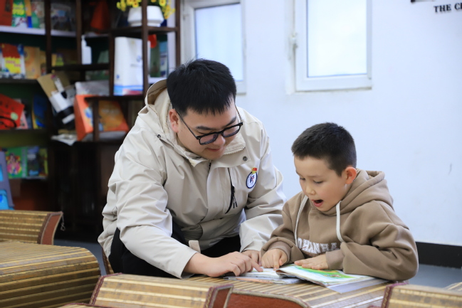 研究生支教团成员为社区孩子讲解语文