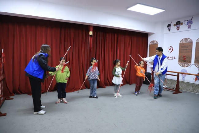 志愿者为京剧小课堂的孩子们授课