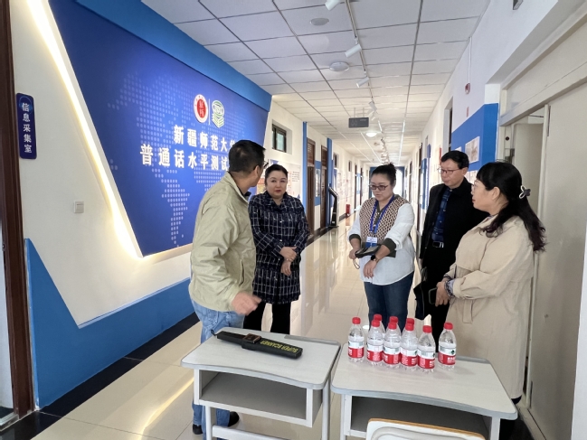 检查现场,毋兆鹏向古丽娜尔·肉孜一行介绍了365英国语言文字工作概况及普通话水平测试站基本情况,展示了普通话水平测试整体环节,路俊哲针对专家组提出的问题作出解答,并提出今后测试站工作的推进要点。