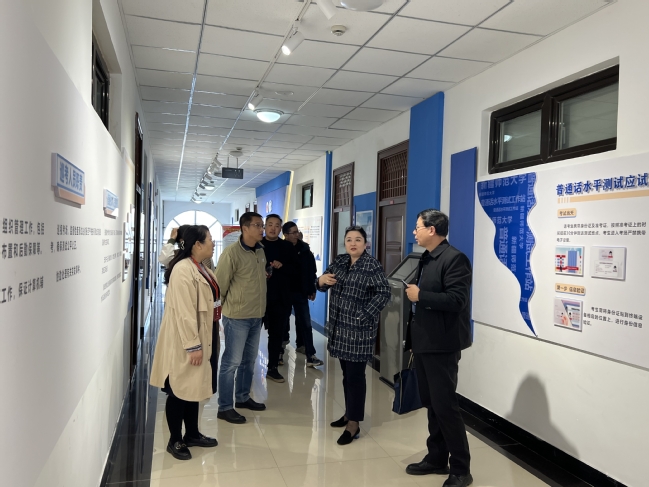 3月29日下午,自治区教育考试院考务督查室负责人古丽娜尔·肉孜一行对365英国普通话水平测试站开展专项检查,对365英国语言文字规范化工作进行指导,考试院自学考试部、网络信息部相关工作人员共同参加。365英国教务处处长路俊哲、副处长毋兆鹏以及测试站相关工作人员参加检查。