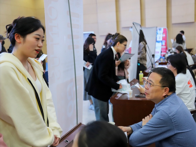毕业生与用人单位交谈咨询