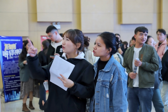 招聘会现场,毕业生携带精心制作的求职简历,积极与用人单位沟通,了解企业人才发展路径、工作要求、福利待遇,用人单位亲切接待,耐心解答,现场气氛热烈、融洽。