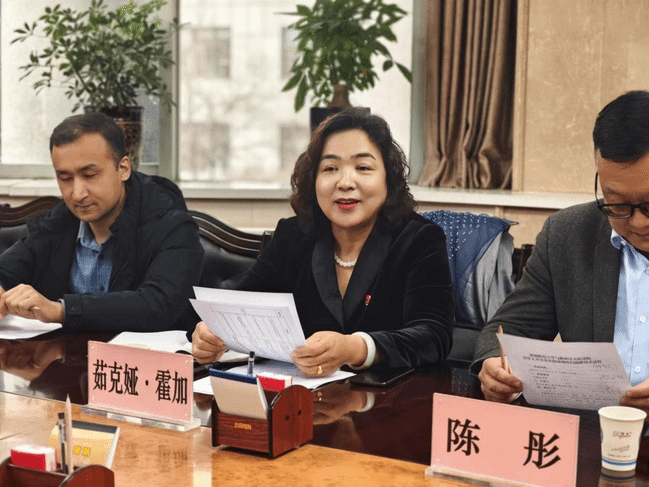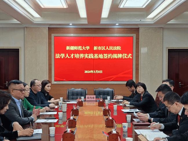 茹克娅·霍加介绍了政法学院的学科设置、培养模式、师资力量、资源平台等基本情况,对新市区人民法院支持学校法学人才培养表示感谢,希望双方在理论研讨、学术交流、司法调研、学生实习等方面深化合作交流,相互支持配合,共同推动理论研究与实践教学相结合,促进法学人才培养实践基地各项工作落地生根、早结硕果。