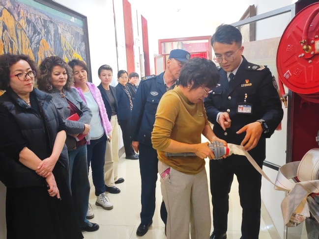 在夯实理论的基础上,讲座第二阶段开展了现场实操演练。安再尔·艾合买提随机选取行政楼一处消火栓箱,演示了消防水带与手提式灭火器的使用方法。教职工近距离观察、亲自操作、亲身体验,更直观了解和掌握了消防器材的使用方法。
