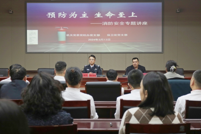 为进一步贯彻落实国家、自治区和学校党委关于安全生产工作的部署要求,增强学校党群行政各部门教职工安全生产意识,提升教职工处置安全生产突发事件的能力水平,3月13日下午,机关党委党校办党支部联合保卫处党支部于行政楼220会议室举办了主题为“预防为主 生命至上”的消防安全专题讲座和实操演练。党校办、保卫处全体工作人员、党政部门教职工代表、学校安保队伍参加培训。