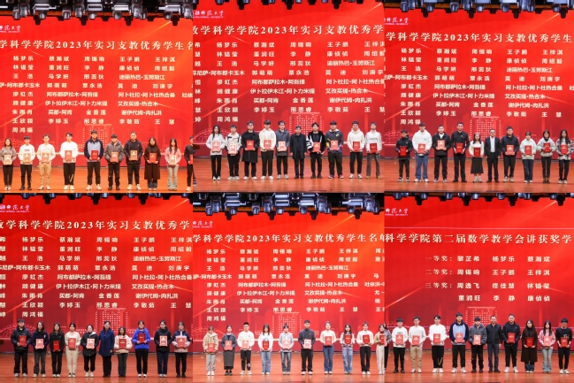 3月14日下午,数学科学学院在温泉校区昆仑讲堂召开“支教星光 青春所在”2023年实习总结表彰大会暨教师资格政策解读及应考动员会。教务处副处长马晓东,数学科学学院全体领导,数学与应用数学专业主任、副主任,2021级、2022级全体学生参加会议,会议由数学科学学院党委副书记张培主持。