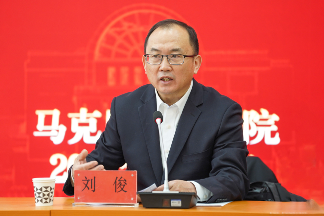 刘俊在讲话中表示,习近平总书记围绕思政课建设作出的一系列重要论述,为办好思政课提供了根本遵循。学校党委高度重视马克思主义学院的建设,特别关注思政课提质增效工作。他表示,希望马克思主义学院全体教师继续深入贯彻落实习近平总书记重要讲话精神,牢牢抓住立德树人根本任务。他强调,一是要坚定政治意识,筑牢政治信念,坚持用习近平新时代中国特色社会主义思想铸魂育人;二是要勤思勤练,练就教学真本领。不断提升授课逻辑性、教学规范性、内容层次性、语言表达流畅性,确保课堂达到优质高效的标准;三是要教研结合,以研促教。有意识、有目的地将日常教学工作中的现象、问题同科研联动,推动教研协同发展。努力做到守正与创新相统一,不断推动思政课教学提质增效,不断推动思政课高质量发展取得新成效。