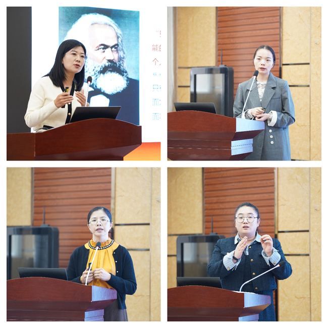 在随后进行的思政课教学展示环节,马克思主义学院教师马莹、杜芳、刘晓燕、杜蓉结合日常工作,依次进行了教学展示。