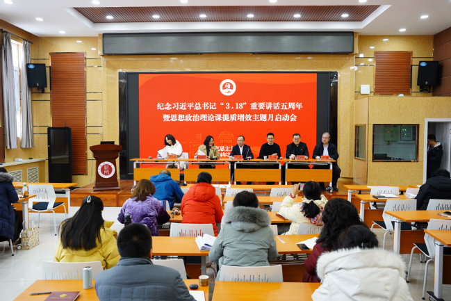 为纪念习近平总书记在学校思想政治理论课教师座谈会上的重要讲话发表五周年,重温习近平总书记“3·18”讲话精神,全面把握、认真落实五年来中央、教育部和自治区相关文件,3月6日下午,马克思主义学院召开纪念习近平总书记“3·18”重要讲话五周年暨思政课提质增效主题月启动大会。校党委副书记刘俊出席大会并讲话,会议由马克思主义学院副院长罗志佳主持,学院全体教师参加了本次会议。