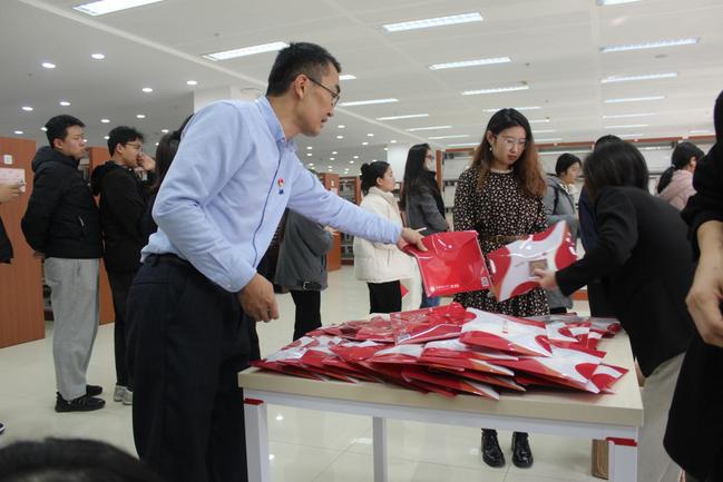 图书馆馆长包瑞为考研学习发放福袋